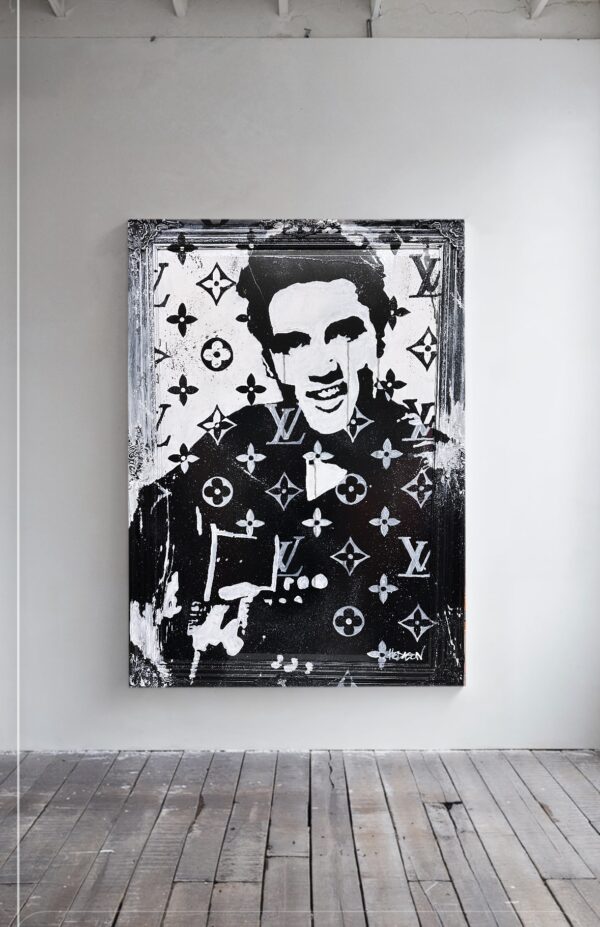 Acrylic / Spray paint on framed antique mirror and ready to hang.